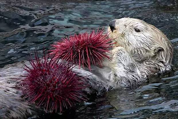 你以为海胆的身体构造满是保护它的棘刺或叉棘,在自然界就没有天敌了吗?不,天敌之一:海獭。海獭最喜欢的食物就是海胆。海獭的数目在加利福尼亚州的蒙特瑞湾骤降,这导致海胆的数目以倍数的增长,将大片的巨藻吃掉,引致生态系统的不平衡。