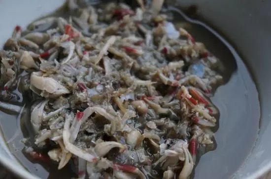 把沙蟹放在盛有较清洁海水的桶里,用手轻洗沙蟹并多次换水,然后把沙蟹腹底的那块脐盖掀掉,或挤出脐底污物,再放进陶臼中杵碎或以搅拌机打碎,加入盐和白酒,最后倒入密封的玻璃瓶子中保存。
