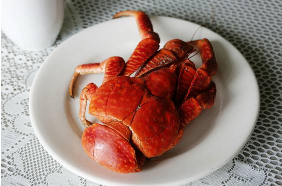 小时候就背着壳的小萌物,长大后立刻变幻画风,最大能长到7-8公斤,普通的也有4公斤。但由于其美味,人类对其疯狂的猎捕以及自然栖息环境被破坏,椰子蟹在其栖息地已越来越难觅踪迹,已经成为面临绝迹的濒危动物。
