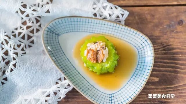 寻常的酿苦瓜,都是以肉为主料,调味后满满当当地填进苦瓜里,吃多了就觉得腻。