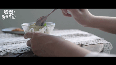 冻好的冰淇淋拿出来,菜菜流着口水艰难等了3分钟。为啥要等?因为这样口感最好啊,哈哈。
