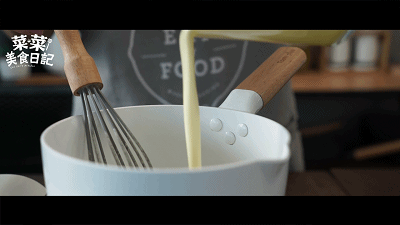 2.加热蛋奶液一定要小火,以免糊锅。加热的时候一边用筷子快速搅拌,避免蛋黄结块,微微冒泡就关火离火,不要煮过了哈。