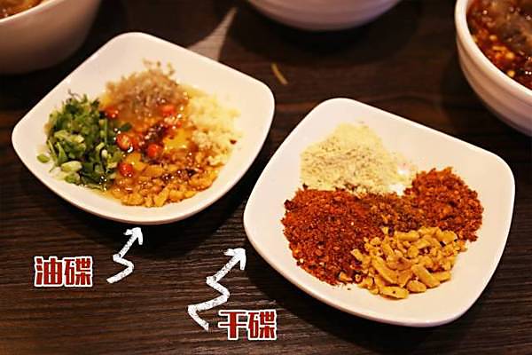 干碟是由干辣椒面、花椒面、味精混合成的蘸碟。也有的加熟黄豆粉、碎花生、碎榨菜等等,甚至还有老干妈豆豉,视个人爱好而定,没什么标准答案。个人偏爱干碟,尤其是蘸肉的时候,和吃豆腐的时候,干碟简直是天使一样的存在,吃完肚子疼也爱。不多说了,现在就去吃!