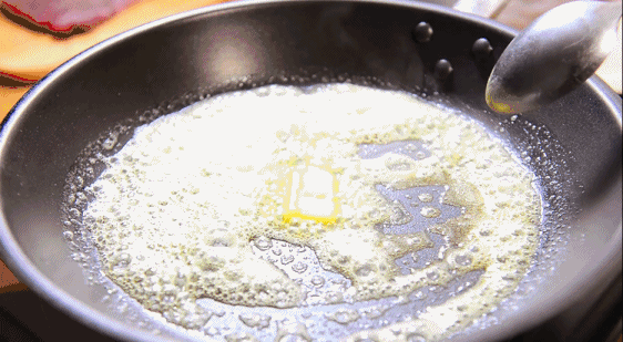 拿出平底锅,用大火先热一下锅,下小许黄油,把腌制好的牛扒放进平底锅煎,放进锅里之后不要去翻动。一分钟后快速的翻面再煎个1分钟。煎煮的过程把黄油和肉汁淋在牛扒身上,这样牛扒的香味才会更上一层楼。