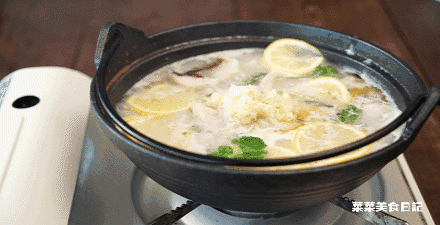 鲜鱼洗净剔骨切片,先用鱼骨炖煮出高汤,再放入鱼片和柠檬烫熟即可关火。