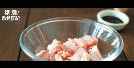 1.五花肉切块,加入姜葱、适量生抽、老抽、盐、少许鸡精、白糖,冰箱冷藏腌制过夜。