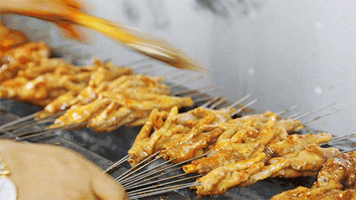 每次经过都要加快脚步,弥散在空气里的香味,油脂掉进炭火里烧得滋滋作响的声效,稍一迟缓就走不动道了。实在是太馋人!
