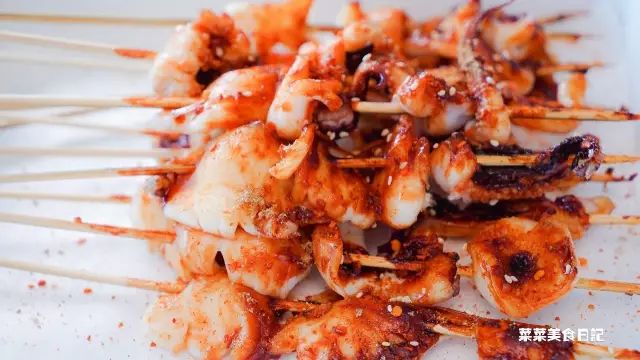 鱿鱼这种难入味的食材,果然还是烧烤这种浓墨重彩的烹饪方式最适合它。
