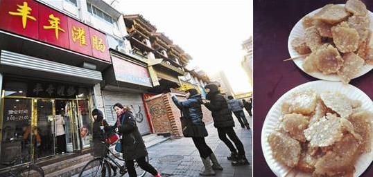 老字号传人们也一个个恢复了门面,南横街开了小肠陈,蜡竹胡同开了李记白水羊头,廊房二条开了爆肚冯,生意都特好。国营老字号中值得一提的是隆福寺的丰年灌肠,用的是猪大肠油煎制,吃起来喷香爽脆,陪伴了整整几代北京人,这家店于2016年2月22日暂停营业。