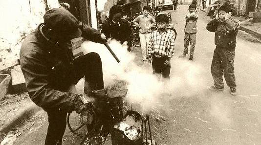 曾经吓破无数外国友人胆的“大炮手摇式爆米花机”了,最早可以追溯到宋朝。一个黑色大炮管,下面是熊熊火焰,只听到“砰”的一声巨响,热气升腾,无数爆米花瞬间将袋子填满,香气扑鼻。