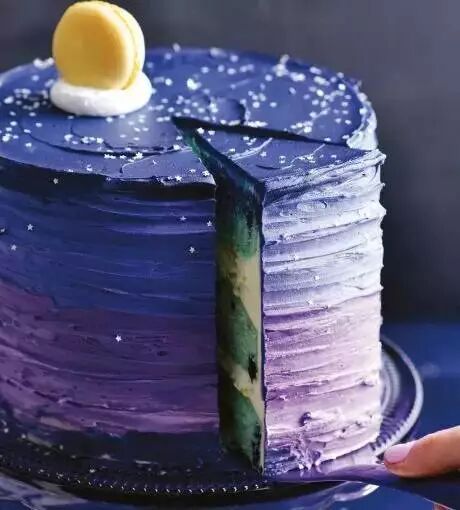不仅从外表看像极了星球,就连内部的结构也用不同颜色的蛋糕来模仿