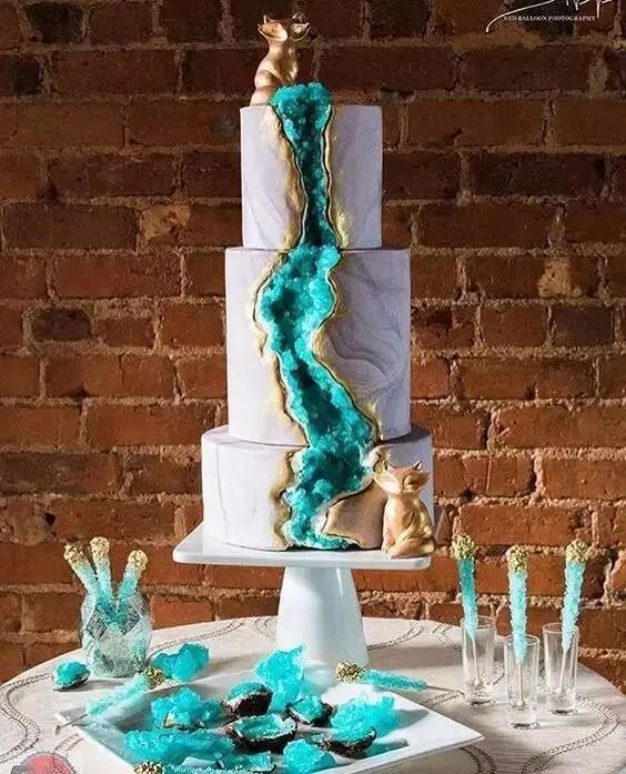 将岩石的肌理运用到蛋糕中,形成独特的视觉效果,变成宝石一样,太美!