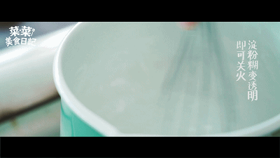 2.锅中倒入400g水烧开,把淀粉水加入到锅中,持续搅拌至透明黏稠即可关火。
