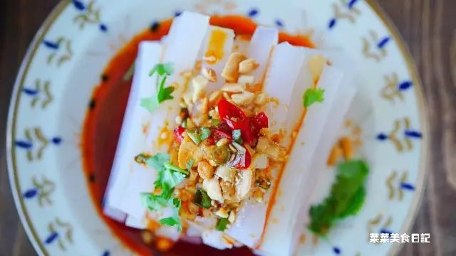凉粉本身味道清淡,浇上调味,吃起来不但麻辣味十足,还真有让人涕泪横流的冲动。