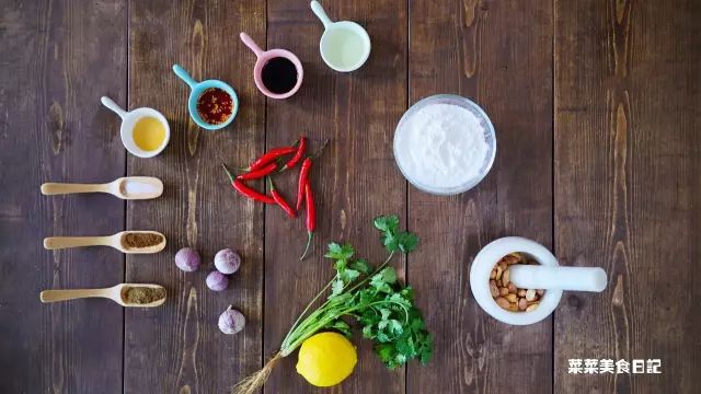 5.准备配料:把酱油、香油、醋、辣椒油、辣椒圈、葱花、柠檬汁、蒜末、糖、五香粉、胡椒粉混合后,搅拌均匀。