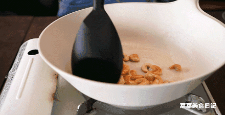 5.起锅烧油,放入腰果炒熟后,捞出备用