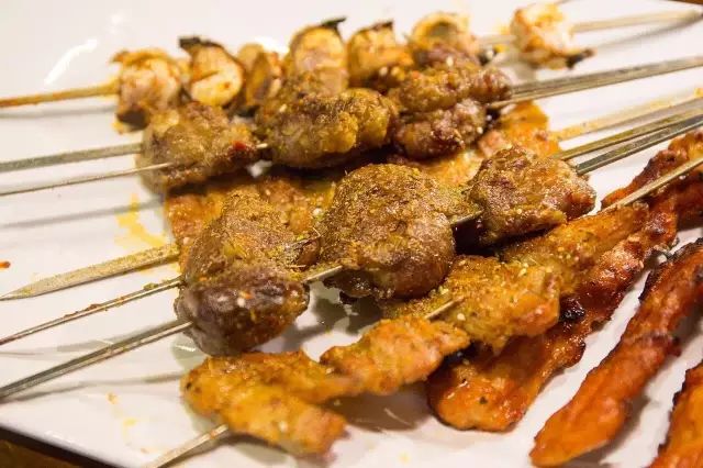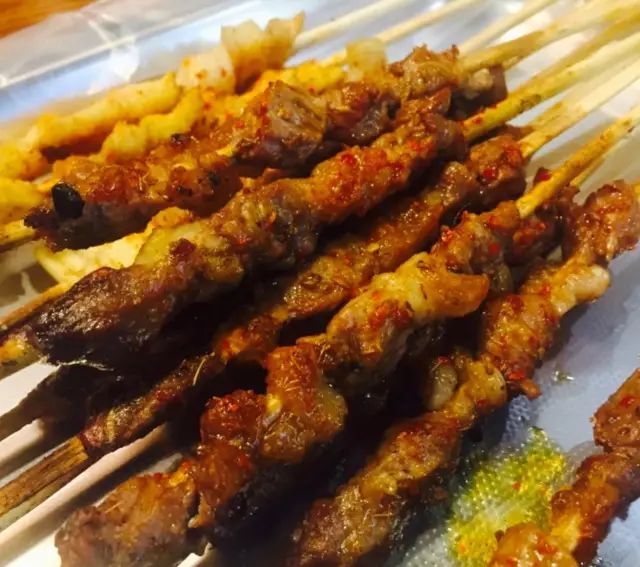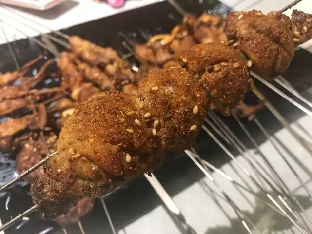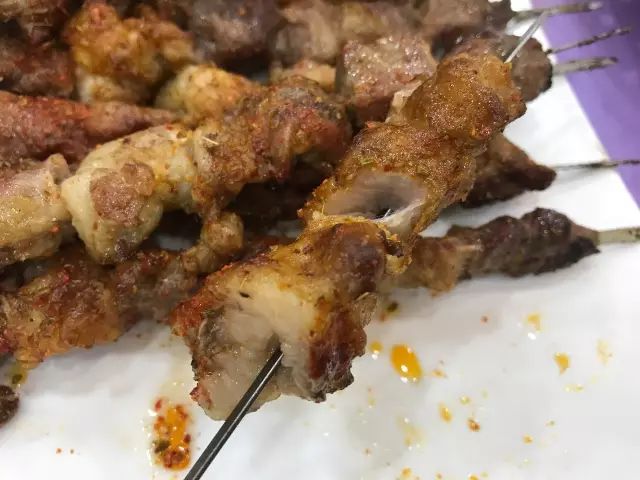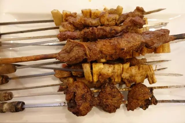 到了偏脸子肯定要试试羊蛋,色泽金黄,味道也不膻,因为是新鲜的,比冻过的羊蛋要更嫩,还滋补;羊肉串儿则保留了传统的炭烤方式,色泽酱红,麻辣鲜香,撒上一撮辣椒面,孜然粉,特别解馋;还有牛板筋,在这里叫“折磨人”,筋道,越嚼越香,但不建议牙口不好的朋友来吃。