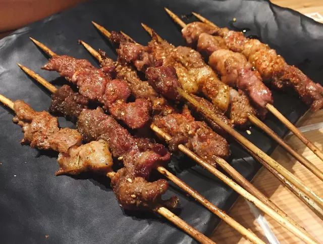 外焦里嫩的肉串,撒上孜然和辣椒面和自贡产的盐,俘虏了无数人的味蕾,撸完此串,天下无串!这里还有霸王腰,大只的羊腰串成一串,烤得焦黄,表皮上一层酥脆的肥油,趁着热气一口咬下,口腔立刻可以感到汁水般的喷射感。