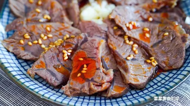 卤牛肉是真好吃!牛肉切到极薄,蒜蓉、芝麻、辣椒油往上那么一拌,什么儿女情长,什么江湖纷争,都远不及它来的诱惑。