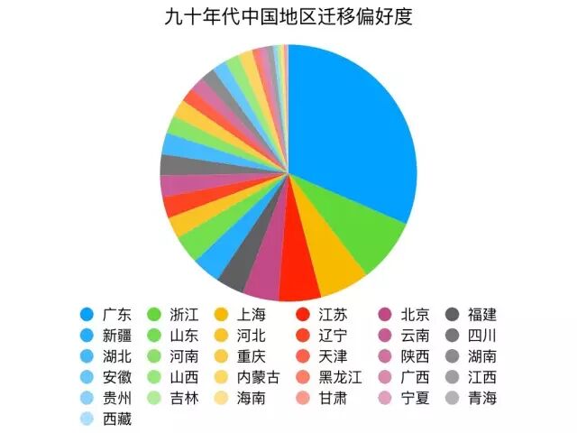九十年代地区迁移偏好度 / 作者自制-数据来自国家统计局