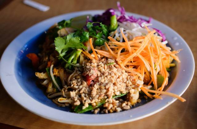 这款经典的菜式,无论是在高级餐厅还是路边摊你都能享受它的美味。软糯弹牙的河粉配上蒜末,辣椒,各式肉类和鸡蛋大火翻炒,出锅的时候再加上花生碎,豆芽,鲜虾,豆干等十多种材料,让整盘炒粉的味道更佳丰富。