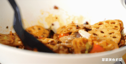 5.加入炸好的土豆、藕片,最后放入洋葱。