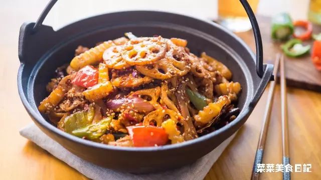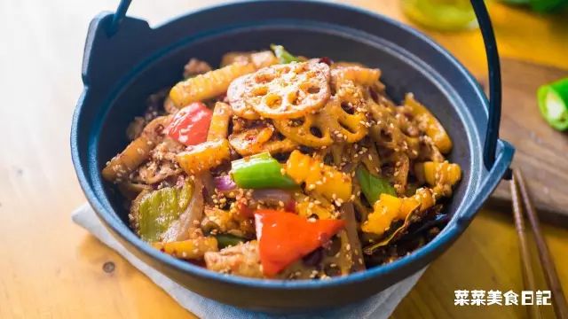 一般来说,做干锅很少会用到绿叶菜,因为那实在太吸油了~菜菜我选择的是土豆和莲藕,此外还能试试莴笋,金针菇,花菜,红薯,豆皮,魔芋丝等等,不开玩笑,怎么搭都好吃。
