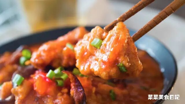 红汤汁浸入到酥肉里,番茄的酸甜口感中和了酥肉的油腻,简直就是绝妙搭配。