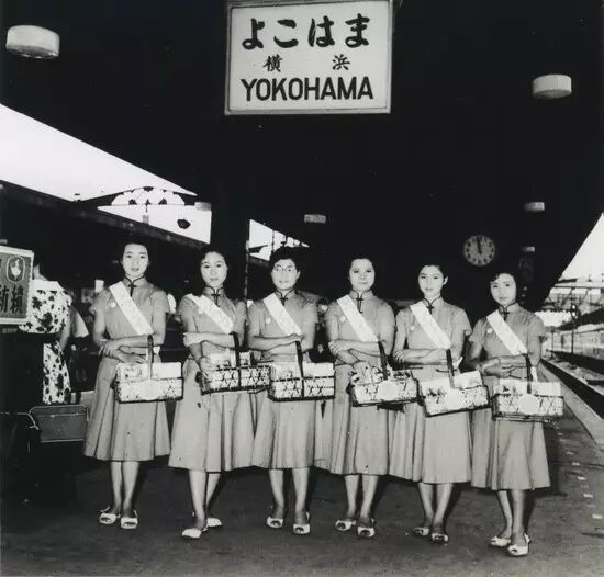 △ 涩谷实 1953 年导演的电影《大骚乱》(やっさもっさ)里出场的身着统一制服,在横滨站台上售卖“烧麦便当”的女性。图片来源 | twitter