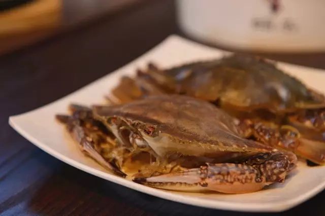 个大肉多,膏黄饱满的梭子蟹,浙江地区会做成呛蟹,也就是生腌梭子蟹。活蟹壳朝下分层叠装进瓷坛,两斤水,一斤盐倒入坛中,撒入少许花椒和白兰地(威士忌也不错),生腌24小时,斩件,开吃。香、咸、甜、鲜四种味道在嘴边依次展开,又融汇在一起,下酒下饭都是极品。