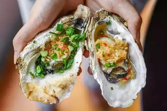 2、生蚝:碳火烤加葱蒜蓉