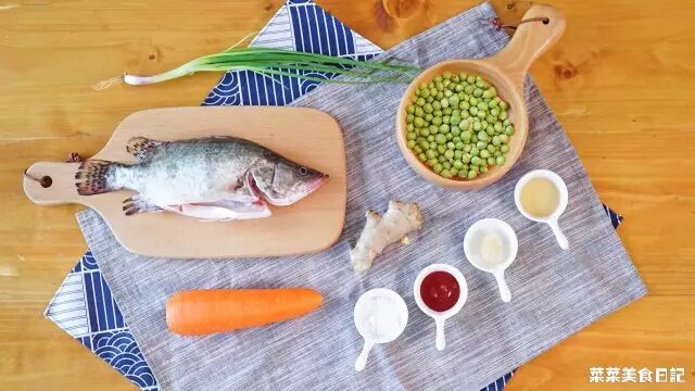 鳜鱼1条 豌豆10粒  胡萝卜1根 鸡蛋2个
