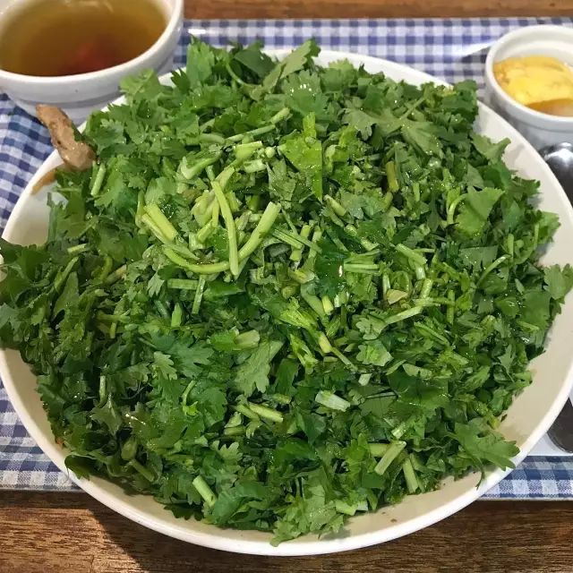 爱搞事的厨师们总是喜欢把香菜切得细细的,与其他的食材混杂在一起,让憎恶香菜的人不得不揭竿而起——我们挑不出香菜。
