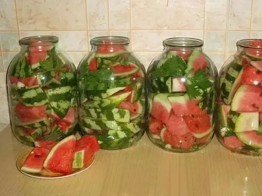 提前准备2千克西瓜,1升的水,70毫升醋,3汤匙糖,1.5汤匙的盐。水盐和糖,煮沸,煮沸10-15分钟,再加入醋。最后把切成中等大小的西瓜块放在罐子里,盖下灭菌容器约20分钟。选择温暖的地方倒盖下来存放,想吃的时候就拿出来吃!