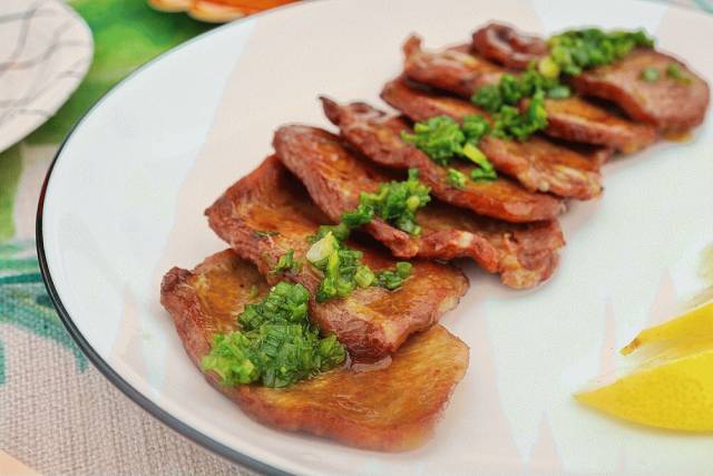 牛舌通常配黄油或是普通的烤肉酱就很美味,不过这里推荐一个更加清香的搭配,盐葱酱。