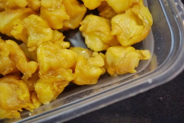 这是鸡里本身的水分连带着鸡油都被蒸出,看鸡油就知道整体鸡品质还不错~