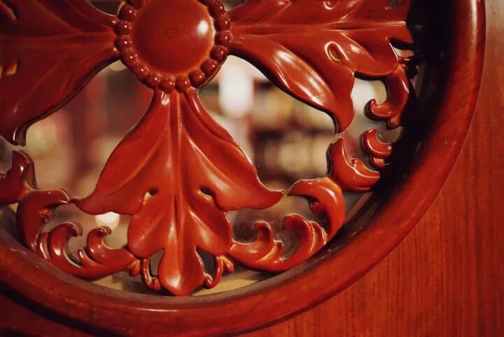 典型的英式酒吧,黑色大理石门头淹没在夜色中,一道雕花红木门将现代的喧嚣阻挡在外,低调而浮华,只留下一个小孔透着橘色的暖光,向你发出邀请。