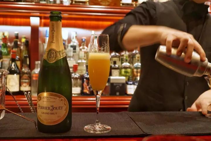 第一次去的时候天气还有些闷热,得到一杯改良版的 Mimosa(传统配方是用香槟加上橙汁):巴黎之花香槟加上百香果汁,味道平衡又清爽,果香在口腔里乱窜,炸出许多小花来。