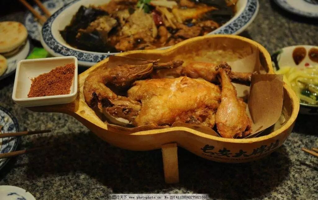 韦陟吃鸡不光要好吃,还得好看,为了满足他的需求,家中的厨师将鸡捆扎,先煮后炸,做出了香醇酥嫩、形似葫芦的“葫芦鸡。”这道曾是纨绔享用的名菜,在历史的演进中走向了民间,成为了西安人民生活中常见的菜品,深受大众喜爱。后来还有发展有“八宝葫芦鸡”,佐之以圆糯米、鲜豌豆、熟火腿、苡仁、芡实、香菌、莲子、百合等八种馅料,荤素同食用,风行全国。