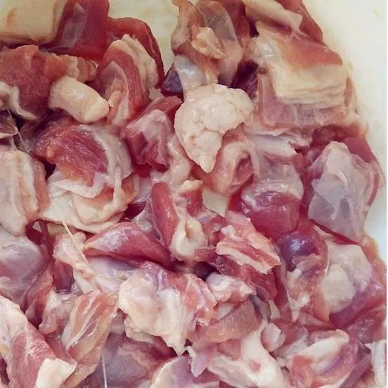 1. 将羊排肉(无骨的)洗净,切方形的小块,加入料酒、葱末、鸡粉拌匀,腌半小时。