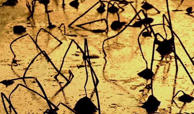 只有诗人林黛玉是立即从审美的角度来看这些枯叶的,她想起了这句李商隐的诗,是《宿骆氏亭寄怀崔雍崔衮》中的一句,这说明她本已由眼前相似的景色联想到李商隐“竹坞无尘水槛清”的诗境,而且认同枯荷有它们的诗性之美——“留得残荷听雨声”,这是一幅全息的秋意图,有视觉,有听觉,有温度,有湿度。秋雨打在上面,发出错落有致的声响,本身就别有一番意境,又可以陪伴孤单者的孤寂和宽解长夜不眠人的心事。