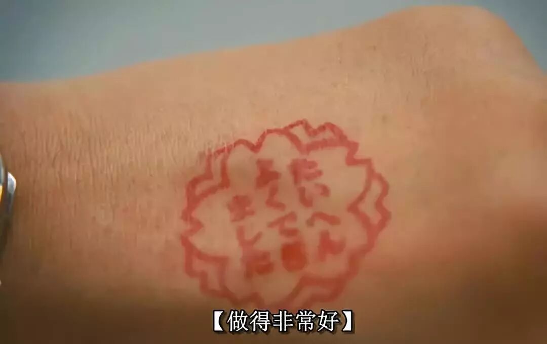 下了电梯后,晴子让女儿拦住了这个人,给他盖了一个小红花的印章,花里面写着“做得非常好”。