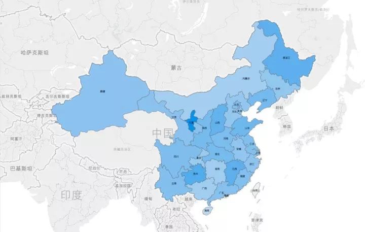颜色越深,表示吃辣能力越强(参与调查人数低于 100 的省份没有加入统计中)