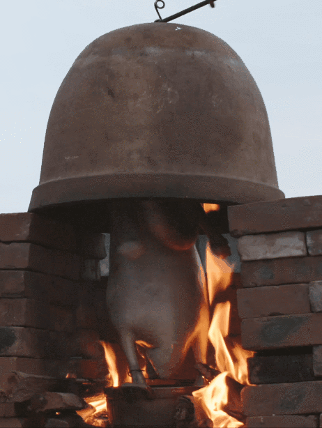 当然,不是真的楼,以砖砌烤炉,上扣一口聚热的钟形罩,在里面挂鹅而烤,被称作“鹅楼”。