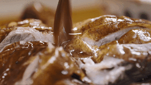 不同于其他做法对脆皮的迷恋,这种如南京烤鸭般的浇卤吃法,别具一格。