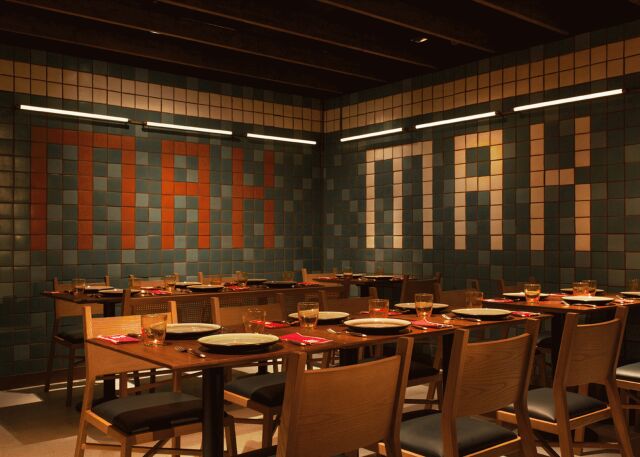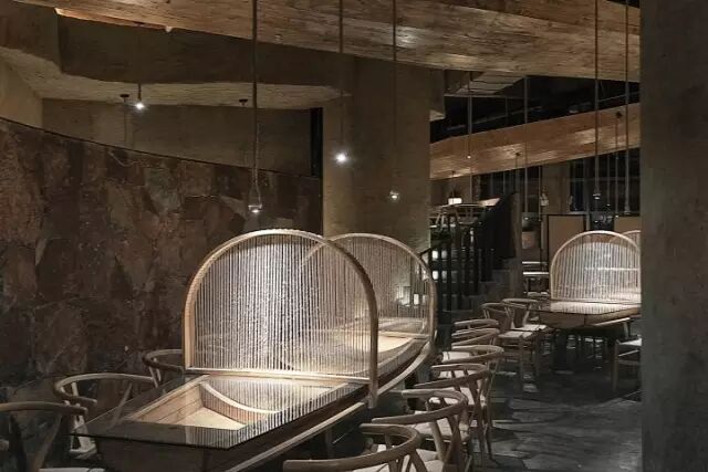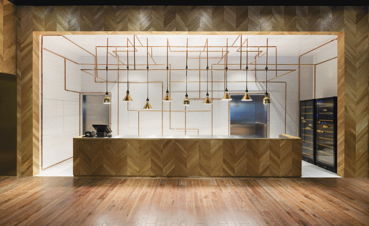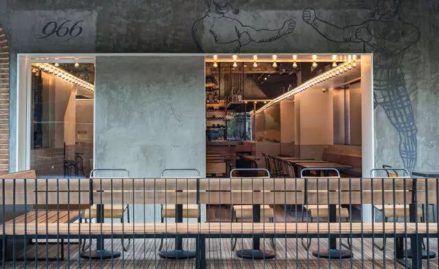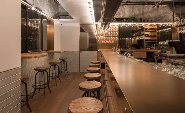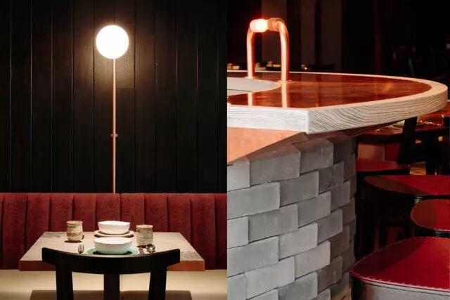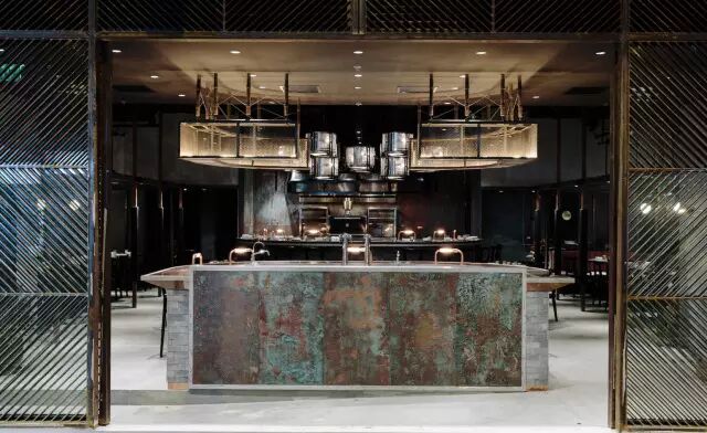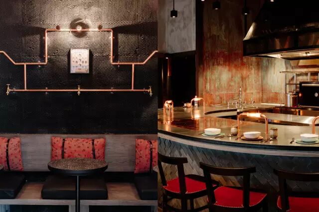 黄佩茵(Yenn Wong)从未放弃过重新定义城市的追求,这家Rhoda餐厅也是她在香港投资的第10家餐厅,也是资深主厨Nathan Green专属的第一间餐厅,专注于原始而舒适的现代菜式。 “我们希望通过餐厅原始又有趣的现代设计,表现出Nathan的个性与对食物的热情,” 设计师Joyce Wang用黑灰调色装饰底楼,弥补闪闪发光的铜饰以求平衡。 在粗犷的工业风格中也不失用心的细节,桌面上精致的玫瑰雕刻,水管造型的墙面装饰、用回收洗衣桶改造的灯具等等,这些都是Joyce Wang 专为Nathan打造的舞台。 半私人的Nate房间有着粗糙的水泥墙面,饰有传统剃须刷与天花板灯箱,暗喻Nathan显眼的大胡子与身上的复古纹身。 Nathan的宗旨就是回归“正规煮食之道”,菜单很短,食物简单,标价质朴,味道浓厚的12小时慢煮羊肩、烟熏茄子与酥脆青葱作配菜的盐焗国王虾、灵感源于主厨妈妈食谱的碎姜饼,都是值得一尝的美味。