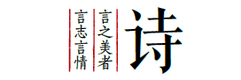 “诗”,形声字,《说文解字》:“诗,志也。从言,寺声。”意思是说,诗是用言语表达心声的一种文学体裁。