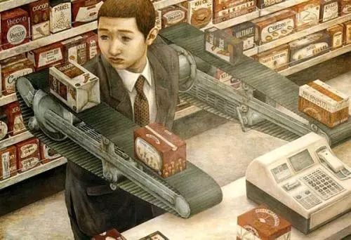 像机器一样被自动饲养的人;