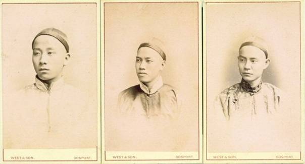 清政府在光绪三年组织船政学堂一批优秀毕业生到英国学习,这些年轻人已经二十岁出头,当年的小孩儿已经长大,这里的六个人是青年时代的萨镇冰、林永升,刘步蟾(上排左起)、叶祖珪、严复、林颖启(下排左起)。刘步蟾年轻的时候挺帅的,没有看到这张照片的话,我们不知道刘步蟾年轻时的模样。