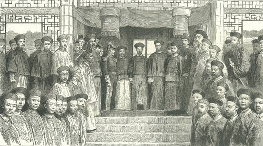 1858年,在第二次鸦片战争中,清政府被迫与英法等国签订《天津条约》,其中规定允许外国公使驻京。1860年以后,西方列强纷纷在北京设立使馆,而中国却一直未曾遣使出洋。《天津条约》规定十年后修约,清廷担心西方列强趁修约之机“索要多端”,急欲事先遣使联络各国。可是使臣的遴选和中外礼仪纠葛却成为两大难题。无论未出过国、不通外语的总理衙门官员,或是毫无外交经验的同文馆师生,都不堪当此重任。蒲安臣是美国驻华公使,在其任满之后,清政府委托他作为钦差,率使团访问欧美各国。此外,使团还包括中国随员、译员(大部分是同文馆学生)等,共30多人。蒲安臣使团于1868年2月25日从上海出发,先乘船横渡太平洋到美国,访问了旧金山、纽约、华盛顿。又横渡大西洋赴欧洲,访问了英、法、瑞典、丹麦、荷兰、普鲁士、俄国、比利时、意大利、西班牙等国,直至1870年10月18日回到上海,历时两年八个月,先后访问了欧美11个国家。